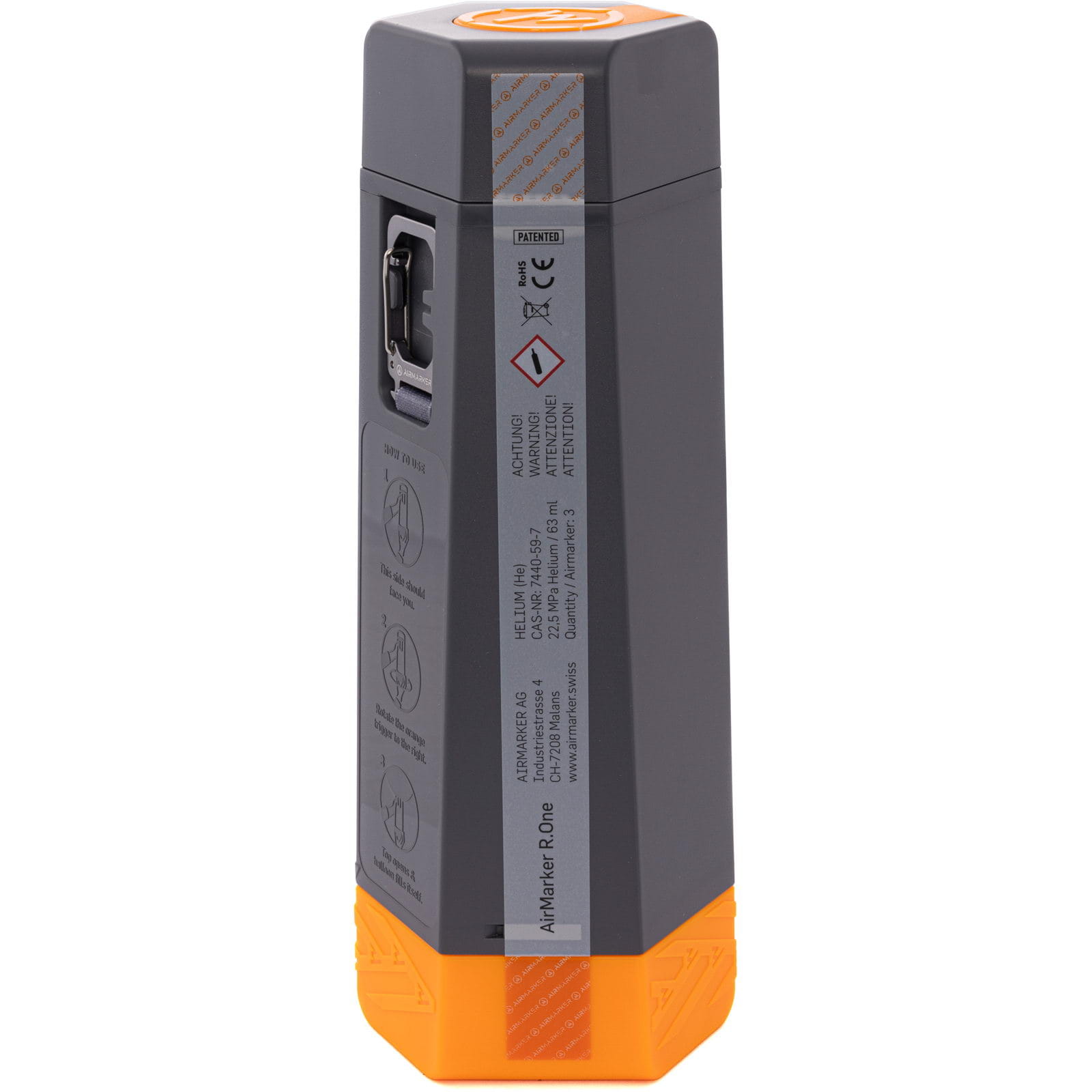 Wer sich in der Natur bewegt, weiss dass ein Unglück schnell passiert und es auch Erfahrene treffen kann. Ein überraschender Wetterwechsel, eine Wurzel, die übersehen wurde, eine Gefahrenzone, unebene Bodenbeschaffenheit oder ein falscher Schritt genügen, um sich in eine missliche Lage zu bringen. Ab jetzt zählt jede Minute. Der AirMarker R.One wurde entwickelt, um Suchen abzukürzen und wertvolle Zeit zu gewinnen. Er ist ein visuelles Rettungssignal, das leicht anzuwenden ist und immer und überall funktioniert. Das System setzt sich zusammen aus einer Auslöseeinheit und einem leuchtend orangen Ballon. Dieser wird mit einer leichten Drehbewegung ausgelöst, der Ballon entfaltet sich auf ca. 45 cm Durchmesser, danach steigt er an einer widerstandsfähigen Hightech-Leine auf bis zu 45 Meter Höhe und erfüllt dort angekommen seine Aufgabe. Über den landschaftlichen Gegebenheiten schwebend, signalisiert er von weit her sichtbar, dass jemand Hilfe benötigt. Einmal ausgelöst, markiert der AirMarker deinen Aufenthaltsort und signalisiert ihn, leuchtend und reflektierend.