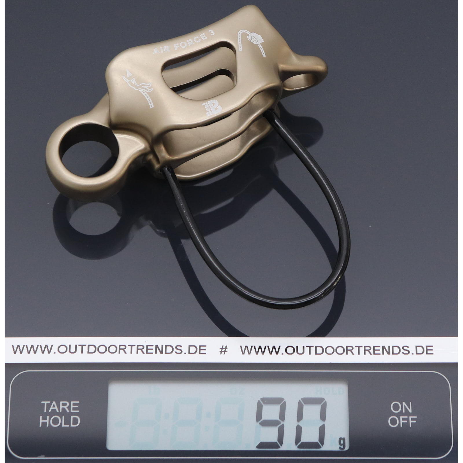 Das Air Force 3 von Beal ist ein Sicherungs- und Abseilgerät mit vier Seilführungen für die Verwendung mit Einfachseilen oder auch mit zwei Halb- oder Zwillingsseilen. Es ermöglicht dem Sichernden am Standplatz, ein oder zwei Nachsteiger unabhängig voneinander selbstblockierend zu sichern. Die kleine Öffnung vereinfacht das Lösen der Seile unter Spannung. Die zwei großen und glatten Seilführungen sorgen für einen kantenfreien Seilverlauf. Die zwei Seilführungen in V-Form ermöglichen ein leichteres Seilausgeben und dennoch ein kontrolliertes und wirkungsvolles Bremsen, um die Energie beim Auffangen des Vorsteiger-Sturzes abzufangen. Wenn bei Nutzung der V-förmigen Seilführung mit Rillen die Bremswirkung zu groß ist, kann das Air Force 3 gedreht und die breite Seilführung verwendet werden.