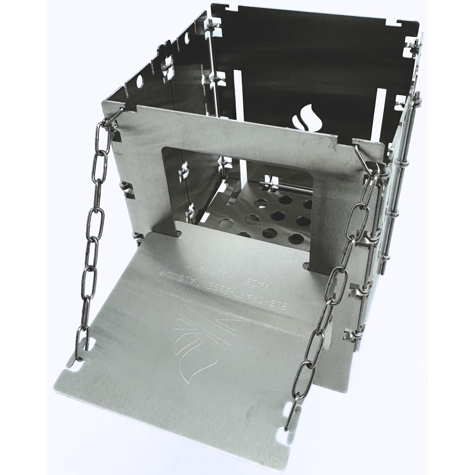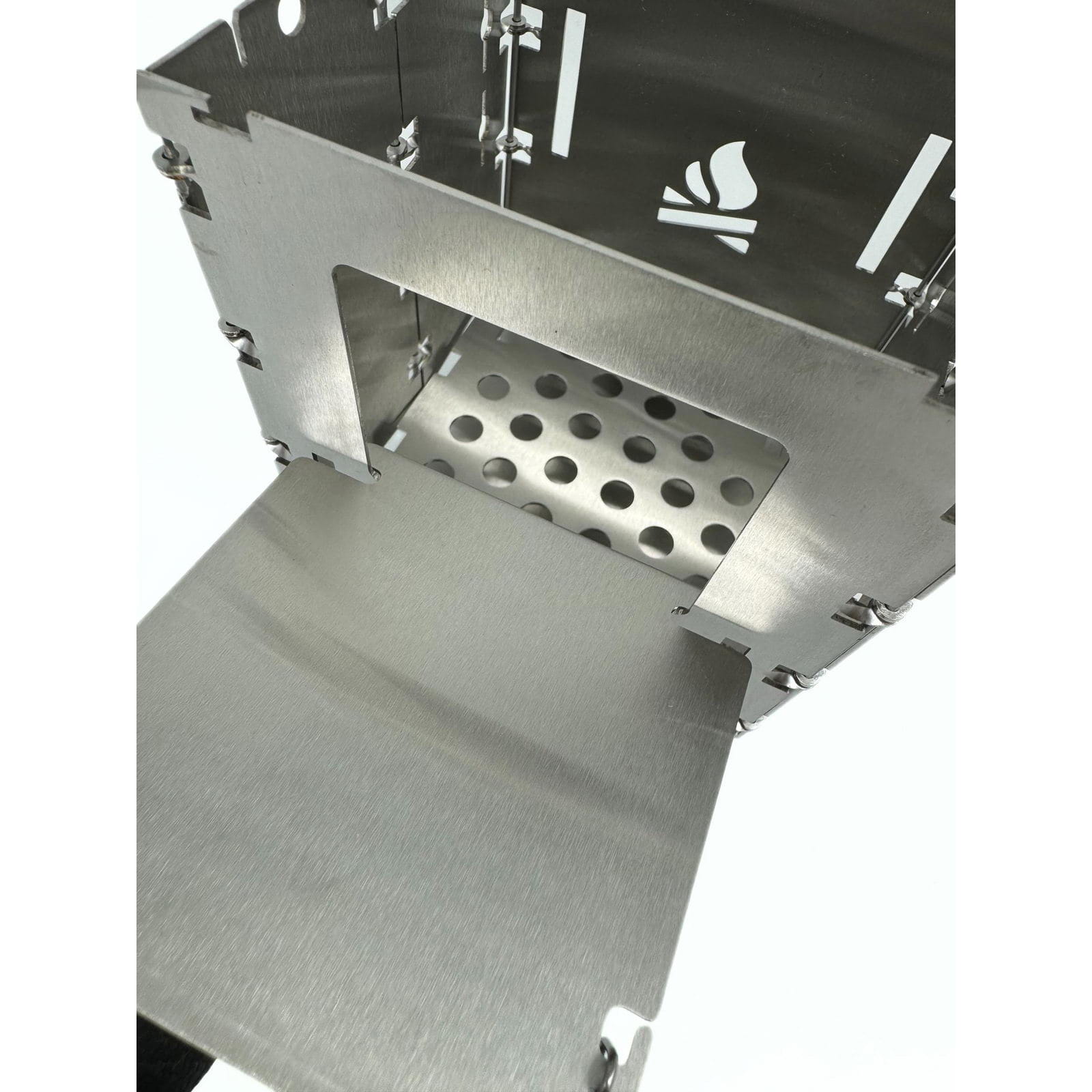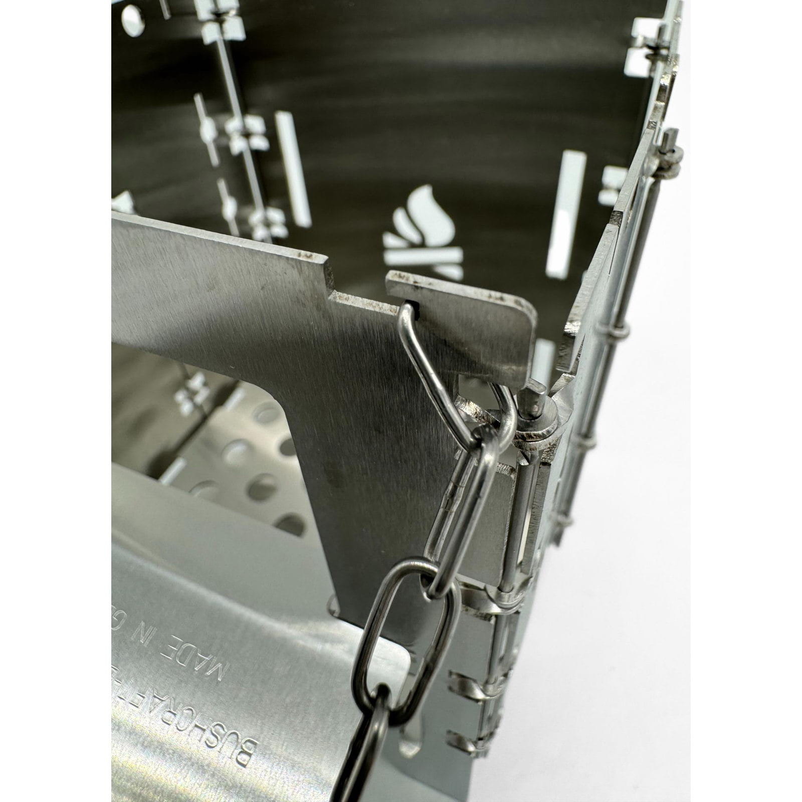 Die Holzrutsche Bushbox LF Titanium von bushcraft essentials erleichtert das Kochen und sorgt für ein entspanntes Feuererlebnis, indem sie das Brennholz automatisch in den Brennraum der Bushbox LF nachrutschen lässt. Längere Äste oder Holzscheite können bereits zu Beginn eingelegt werden, sodass ein ständiges Nachlegen entfällt. Die Holzrutsche aus Titan wird schräg in das Brennstofffenster der Bushbox LF eingeführt und horizontal aufgelegt. Mit der angebrachten Kette kann der Neigungswinkel eingestellt werden, um sicherzustellen, dass das Brennholz nachrutscht und die Bushbox LF stabil bleibt. Je nach Holzgröße sollte der Winkel angepasst werden. Das Feuer wird wie gewohnt entzündet, und das Holz rutscht im Laufe der Verbrennung selbstständig nach. Die Rutsche kann flach eingestellt auch als Plattform zum Warmhalten von Getränken genutzt werden. Achtung: Die Edelstahl-Kette ist hitzebeständig, wird aber heiß und sollte daher nur mit Handschuhen angefasst werden. Gegebenenfalls kann es zwischendurch nötig sein, den Brennstoff händisch etwas nachzuschieben, damit er gleichmäßig abbrennt und nicht versehentlich außerhalb der Bushbox Feuer fängt.