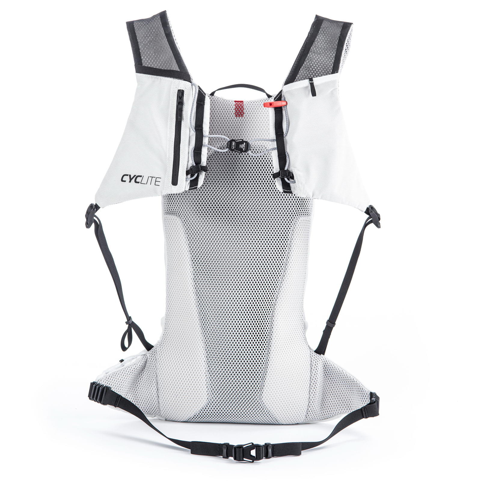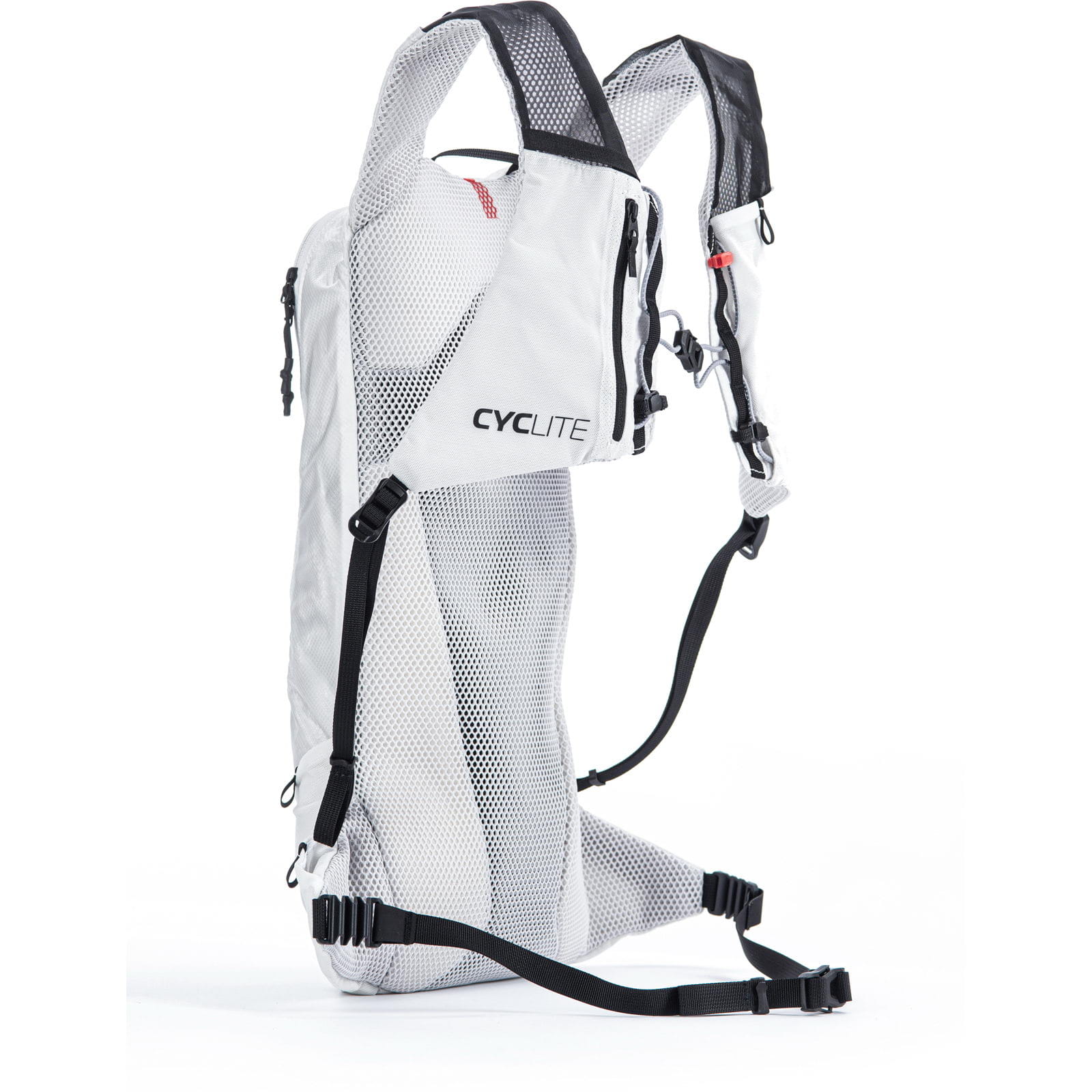 Der Race Backpack von CYCLITE ist ein kompakter, ultra-leichter Fahrradrucksack für kurze Touren oder Rennen, er hat eine schlanke und enganliegende Form. Der Radrucksack ist perfekt für die Nutzung mit Trinksystemen. Der Race Backpack bietet alles für die kurze Tour oder Rennen, bei denen man nur die wichtigsten Dinge dabeihaben möchte. Mit seiner schlanken, aerodynamischen Form und dem extrem geringen Gewicht von nur 311 g (ohne Regenhülle sogar nur 289 g) ist er fast nicht zu spüren. Das luftige Tragesystem mit Anleihen beim Trailrunning ermöglicht höchsten Komfort, erweiterte Verstaumöglichkeiten und stabilsten Sitz auch auf unwegsamen Passagen. Die elastischen Bumper im Hüftgurt erlauben einen festen Sitz, ohne sich eingespannt zu fühlen. Im Hauptfach des Race Backpacks befindet sich eine Abtrennung für die Trinkblase, eine Reißverschlusstasche mit Schlüsselhaken sowie Fächer für Werkzeug und Ersatzteile. Vier elastische Außentaschen, die auch während der Fahrt erreichbar sind, große Reflektoren, eine Rücklicht-Aufnahme sowie eine Regenhülle runden das Funktionspaket ab.
