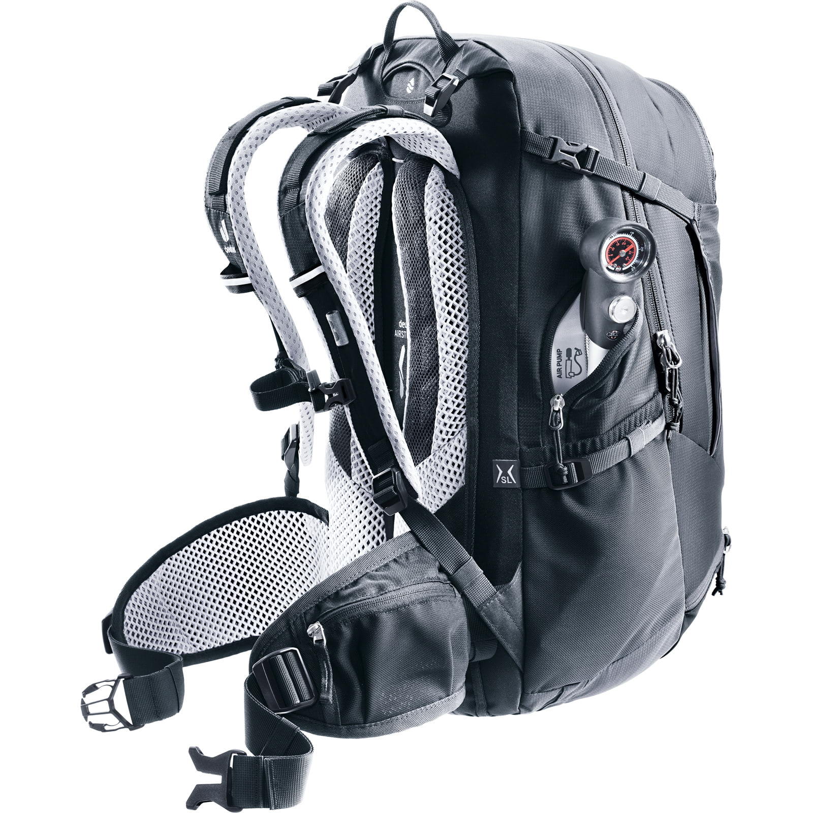 | Merkmale: | Bodenfach mit separatem Zugang von außen | Brillenhalterung am Schultergurt | Brustgurt mit Signalpfeife | elastisches Einschubfach vorne | gepolsterter Hüftgurt | große Rundbogenöffnung | Halterung für Trinkblase | herausnehmbare Sitzmatte | höhenverstellbarer Brustgurt | integrierte Helmhalterung | integrierte Regenhülle in separater Reißverschlusstasche am Boden | Lastkontrollriemen | Materialschlaufen auf den Schulterträgern für Brille etc. | Organizer mit Reißverschlussfach und Einschubfächern im vorderen Reißverschlussfach | reflektierende Elemente | Reißverschlussfach seitlich für Luftpumpe (ca. 30 cm lang) | Reißverschlussfach vorne oben | zwei Einschubfächer im Hauptfach | zwei elastische Einschubfächer seitlich | Schlauchdurchführung für Trinksystem | Schlüsselhalterung | zwei Reißverschlusstaschen auf den Hüftflossen (elastisches Material) | seitliche Kompressionsriemen | seitliche Reißverschlusstasche für Smartphone | Zwischenboden zwischen Bodenfach und Hauptfach kann geöffnet werden | SOS Notfallhinweise | Trageschlaufe hinten oben |