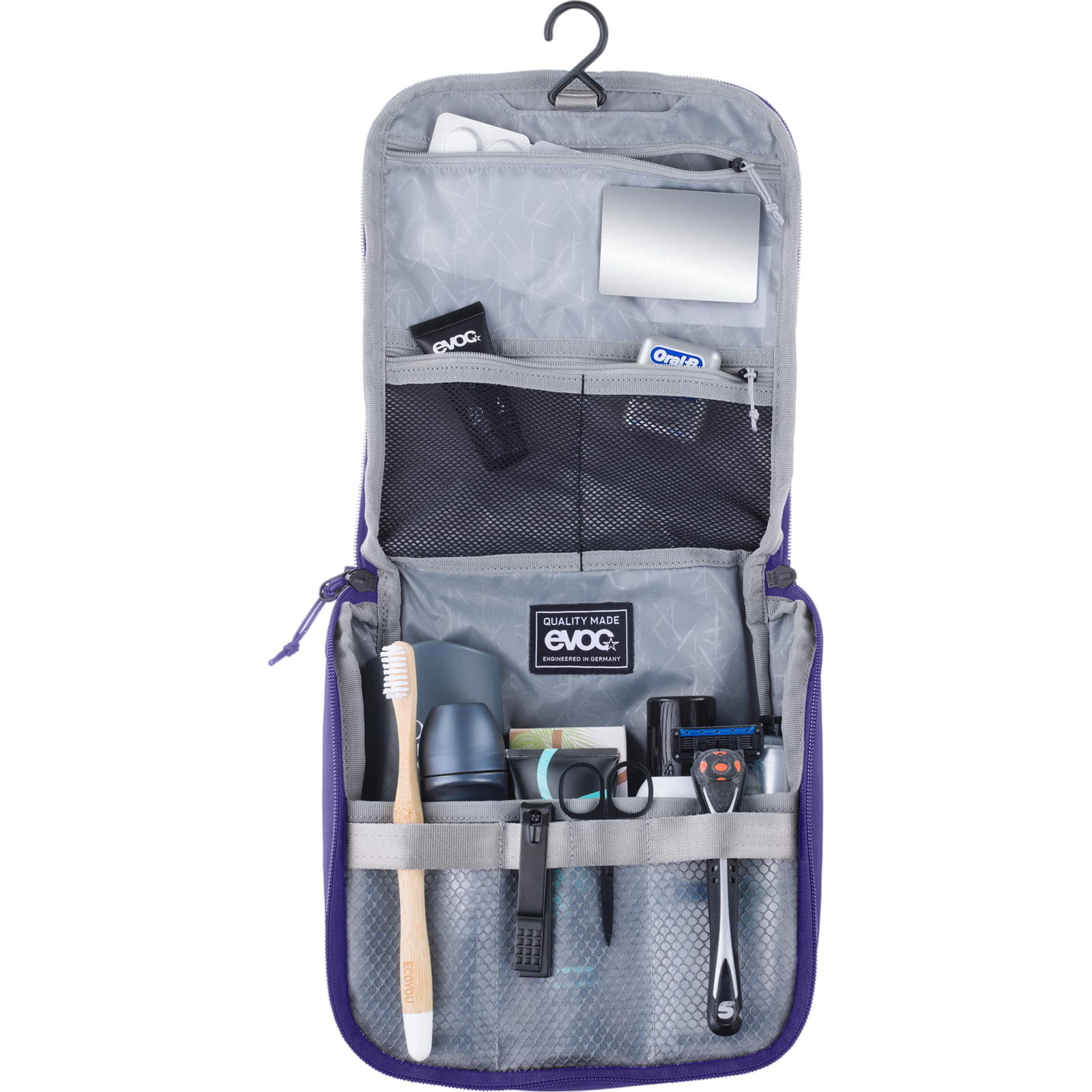 Der Wash Pouch von EVOC ist ein praktischer Kulturbeutel zum Aufhängen mit ausreichend Platz. Getreu dem Motto “Haken dran” lässt sich der Waschbeutel einfach aufhängen, egal ob in der Skihütte oder am nächsten Baum. Mit ausreichend, individuell einteilbarem Platz für alle Frischmacher und einem Spiegel an der Deckelinnenseite geht auch der actionreichste Tag sauber zu Ende.