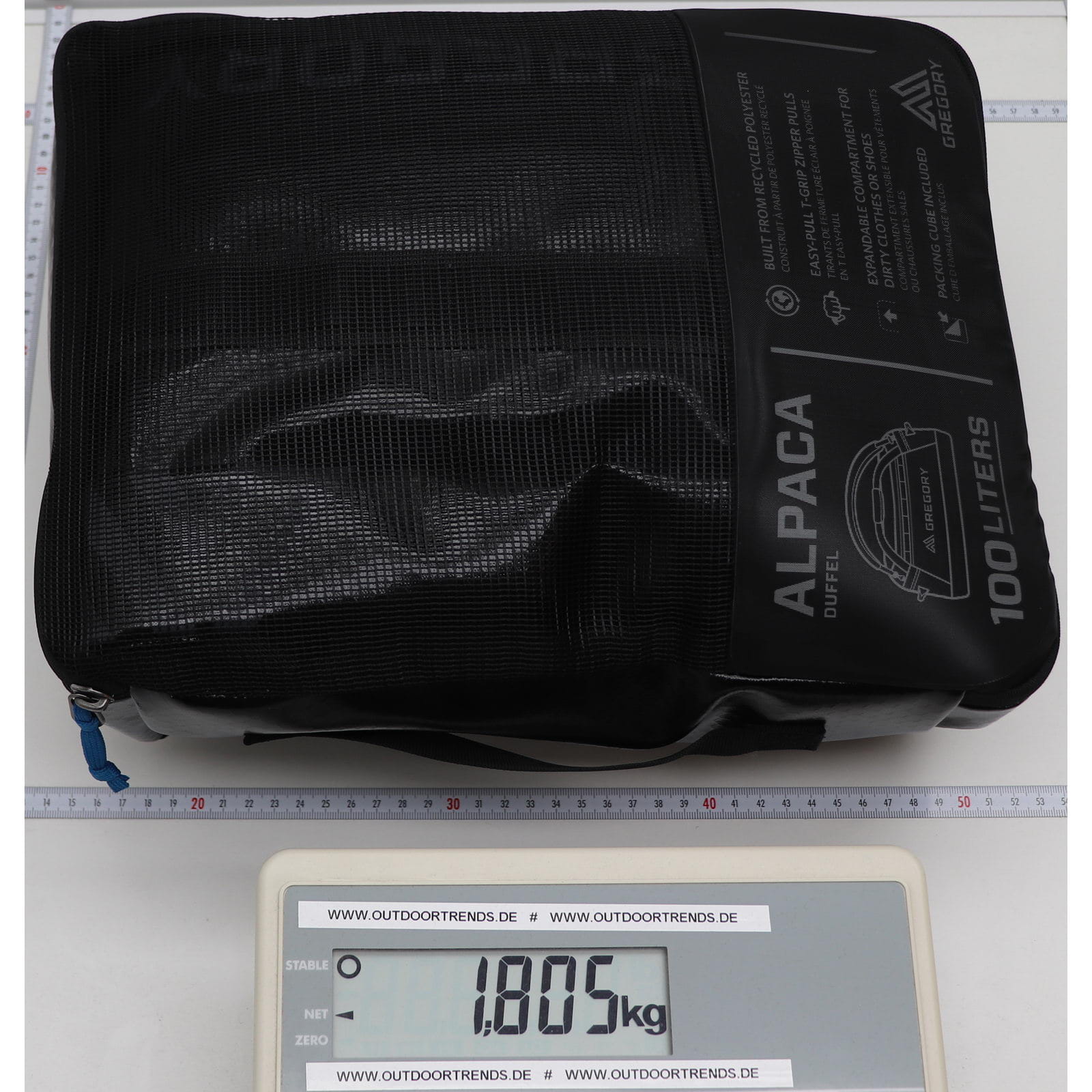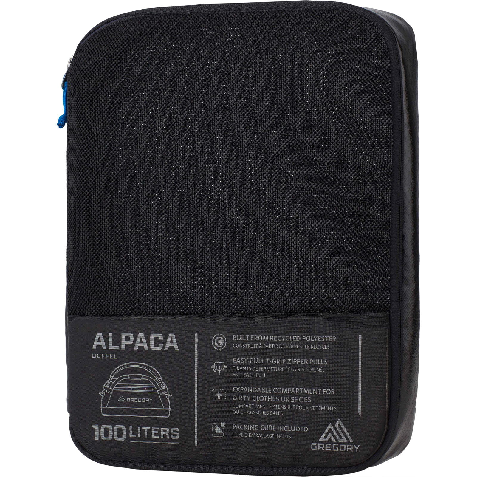 Die Alpaca 100 von Gregory ist eine zuverlässige Reisetasche mit einem Fassungsvermögen von 100 Litern und eignet sich sowohl für lange Reisen als auch für den Transport besonders großer Gegenstände. Hergestellt aus wasserabweisendem Ripstop-Gewebe, das mit TPU beschichtet ist und aus recyceltem Polyester gefertigt wurde für eine lange Lebensdauer. Die Packtasche der Alpaca 100 dient auch gleichzeitig als Packwürfel mit durchsichtiger Netzabdeckung für eine reisefreundliche Organisation. Die erweiterbare Reißverschlusstasche am Ende hält schmutzige Ausrüstung und Kleidung vom Inhalt des Hauptfachs getrennt. Im Inneren der Reisetasche befinden sich Netztaschen mit Reißverschluss zur getrennten Aufbewahrung kleinerer Gegenstände, so dass man stets gut organisiert ist. Die große U-Zip-Öffnung mit leichtgängigem YKK-Reißverschluss ermöglicht einen schnellen und unkomplizierten Zugriff auf den Tascheninhalt. Die abnehmbaren, gepolsterten Schultergurte ermöglichen es, die Tasche wie einen Rucksack zu tragen. Bei Bedarf können die Schultergurte leicht abgenommen und verstaut werden. Verstärkte Tragegurte mit einem innenliegenden Glasfaserstab sorgen dafür, dass das Gewicht gleichmäßig verteilt wird und unangenehmes Einschneiden in die Hände vermieden wird. Der dreilagige gepolsterte Boden mit Innenbeschichtung ist wetter- und abriebfest. Daisy Chains aus Gurtband an der Außenseite ermöglichen ein schnelles Befestigen der Ausrüstung und ein sicheres Verzurren der Tasche.