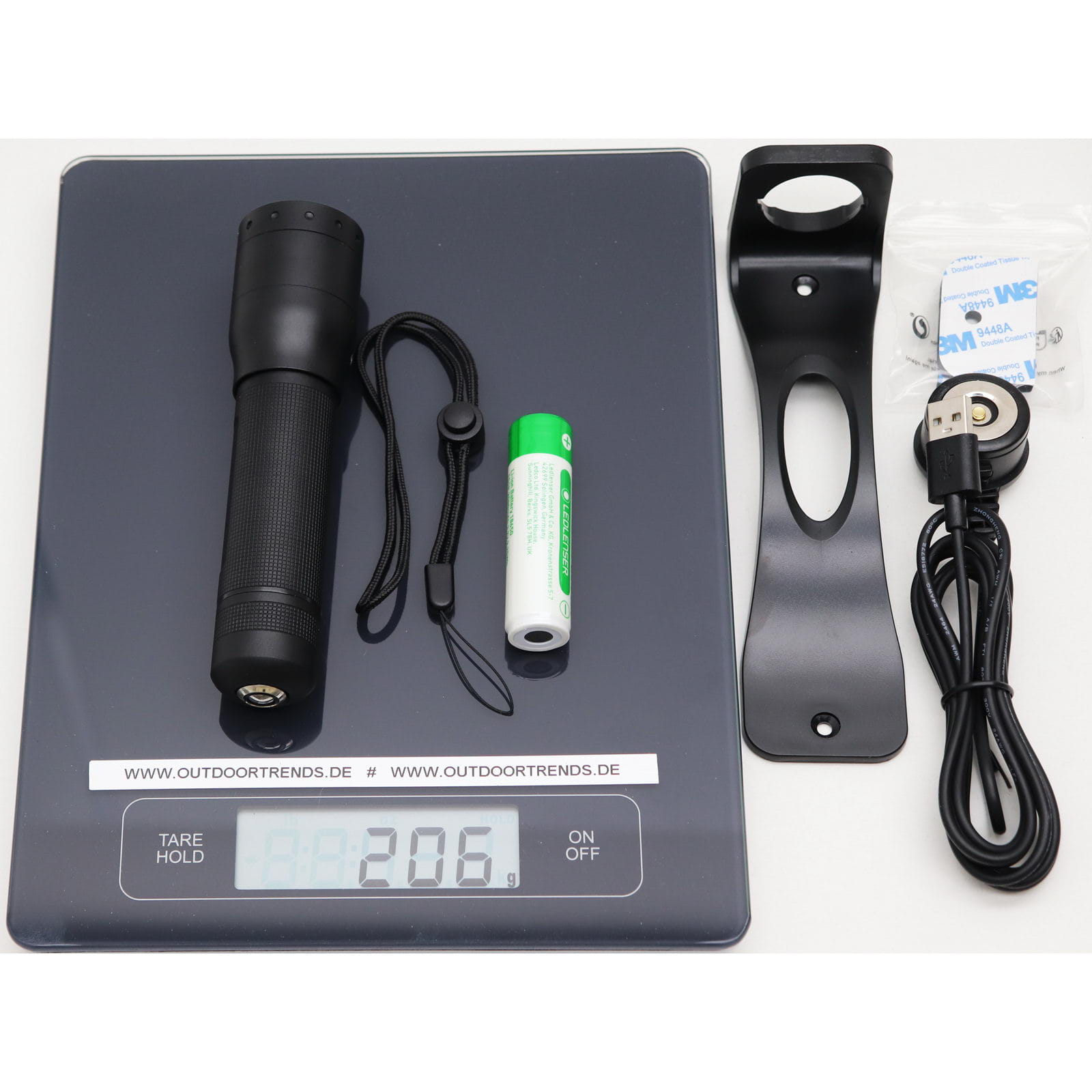 Lieferumfang: Lampe, Akku, magnetisches Ladekabel, Floating Charge System, Montagematerial, Handschlaufe