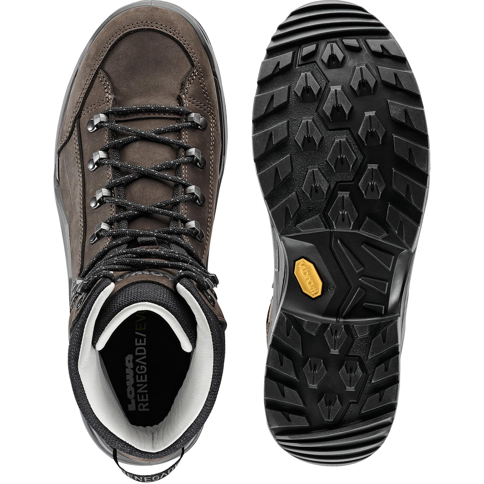 Über Jahrzehnte stand der RENEGADE genau für ein Attribut: die perfekte Passform. Um diesen Aspekt weiter auszubauen, wurde der neue RENEGADE EVO LL MID für Herren von LOWA um einige spezifische Details ergänzt. So wurde zum Beispiel am Schaft auf zusätzlichen Komfort geachtet, indem die Innenseite des Vorfußbereichs komplett aus einem Stück gefertigt wurde. Durch den Verzicht auf überflüssige Nähte kann sich das hier verarbeitete Nubukleder flexibel an die individuelle Form der Fußknochen anpassen, um Reibung zu verhindern und das Großzehengelenk zu entlasten. Hierzu trägt auch die Zwei-Zonen-Schnürung bei, die sich jetzt dank neu gestalteter Klemmhaken noch leichter an die individuellen Anforderungen anpassen lässt. Darüber hinaus verfügt der neue RENEGADE über ein neu gestaltetes Sohlenpaket. Die direkt angespritzte Zwischensohle besteht hier aus zwei Dämpfungsteilen. Der erste Teil besteht aus LOWA® DYNAPU®, beim zweiten Teil handelt es sich um einen festeren Teil, der zusammen mit dem CROSS OVER FRAME für eine optimale Führung sorgt. Für ordentlich Grip sorgt die neue VIBRAM RENE TRAC®. Der RENEGADE EVO LL MID verfügt über eine Vibram-Sohle. Der italienische Sohlenhersteller ist seit vielen Jahren eine der führenden Marken im Bereich qualitativ hochwertiger Sohlen. Die selbstreinigende VIBRAM RENE TRAC® mit multidirektionaler Profilausrichtung sorgt für optimalen Grip auf den unterschiedlichsten Terrains. Kombiniert mit einer ausgeprägten Absatzkante ermöglicht die Sohle ein angenehmes Abrollverhalten für komfortable Auf- und Abstiege. Für eine wirkungsvolle Dämpfung und einen hohen Tragekomfort wird beim RENEGADE EVO LL MID die Sohle des Schuhs über ein technisch aufwendiges Anspritzverfahren mit dem Schaft verbunden. Dazu kommt der Oberschuh in eine speziell gefertigte Gussform. In diese wird anschließend in unterschiedlichen Schichten ein PU-Schaumstoff eingebracht. Daraus entsteht die Sohle, die sich direkt mit dem Schaft zu einer Einheit verbindet. Bei diesem Verfahren wird der Kunststoff Polyurethan eingesetzt. Dabei handelt es sich um einen sehr leichten Schaumstoff. Beim Kunststoff Polyurethan handelt es sich um einen Schaumstoff, der über sehr gute Dämpfungseigenschaften verfügt. Selbst wenn die millionen kleinen Blasen häufig zusammengedrückt werden, behalten sie trotzdem ihre Form und springen wieder in ihren Ursprungszustand zurück. Dies sorgt für einen guten Rebound-Effekt. Durch das direkte Anspritzen kann die Sohle in völlig unterschiedlichen Varianten gestaltet werden. Die vielseitigen Eigenschaften der verwendeten Materialien ermöglichen so ein facettenreiches Einsatzgebiet der Schuhe. Beim Modell RENEGADE EVO LL MID sorgt die Mittelsohle in Form des LOWA-MONOWRAP®-Rahmens für besten Komfort. Dabei handelt es sich um ein dreidimensionales Design der Mittelsohle, das LOWA im Jahr 1995 entwickelt hat. Dieser Rahmen fasst den Fuß komfortabel ein und stützt ihn so auf unebenen Untergründen. Bei Schuhen mit einem SUPPORT FRAME ist die Sohlenkonstruktion dabei leicht hochgezogen. Durch das dreidimensionale Design des Rahmens wird der Fuß optimal in den Schuh eingebettet. Die spezielle Konstruktion der Mittelsohle sorgt für einen bequemen Stand im Schuh. Der Fuß wird angenehm von dem dreidimensionalen Rahmen umfasst. Der LOWA-MONOWRAP®-Rahmen wird aus dem Kunststoff Polyurethan gefertigt. Dabei handelt es sich um ein sehr leichtes Material. Durch die Zwei-Zonen-Schnürung verfügen beim RENEGADE EVO LL MID Vorfuß und Schaft über getrennt einstellbare Schnürzonen. Dadurch kann der Schuh individuell an die Anatomie des Fußes angepasst und für das Bergauf- und Bergabgehen unterschiedlich geschnürt werden. Beim RENEGADE EVO LL MID bietet das Lederfutter dem Fuß dank seiner natürlichen Eigenschaften einen angenehmen Tragekomfort und ein komfortables Fußklima. Die Anpassungsfähigkeit, Langlebigkeit und Fähigkeit, Feuchtigkeit zu speichern, machen das Lederfutter zur ersten Wahl für komfortorientierte Outdoor-Fans. Futterleder ist ein sehr hochwertiges Naturmaterial, das sich optimal an den Fuß anschmiegt. Es passt sich der Fußform an und bietet damit einen hohen Tragekomfort. Schuhe mit Lederfutter sind besonders im Sommer sehr beliebt, da sie hier für besten Komfort sorgen. Leder nimmt Feuchtigkeit sehr gut auf und bietet damit einen angenehmen Tragekomfort. Bei Mehrtagestouren muss beachtet werden, dass Schuhe mit Lederfutter eine etwas längere Trocknungszeit haben. Weitestgehend verantwortlich für das Abrollverhalten und die Dämpfung eines Schuhs ist die Zwischensohle. Diese besteht beim RENEGADE EVO LL MID aus einem speziell entwickelten Kunststoff: LOWA DynaPU®. Die Besonderheit: Selbst wenn es tausend Mal zusammengedrückt wird, behält es trotzdem seine Rückstellkraft. So haben die daraus gefertigten Schuhe auch noch nach vielen Kilometern sehr gute Dämpfungseigenschaften. Die spezielle Materialentwicklung zeichnet sich durch gute Dämpfungseigenschaften aus, wodurch der Gehkomfort und das Abrollverhalten spürbar erhöht werden – selbst bei langen Strecken. Beim Kunststoff Polyurethan handelt es sich um einen Schaumstoff, der über sehr gute Dämpfungseigenschaften verfügt. Selbst wenn die Millionen kleinen Blasen häufig zusammengedrückt werden, behalten sie trotzdem ihre Form und springen wieder in ihren Ursprungszustand zurück. Dies sorgt für einen guten Rebound-Effekt. Der Kunststoff Polyurethan ist sehr leichter Schaumstoff. Dadurch punktet die Sohle durch besten Tragekomfort.