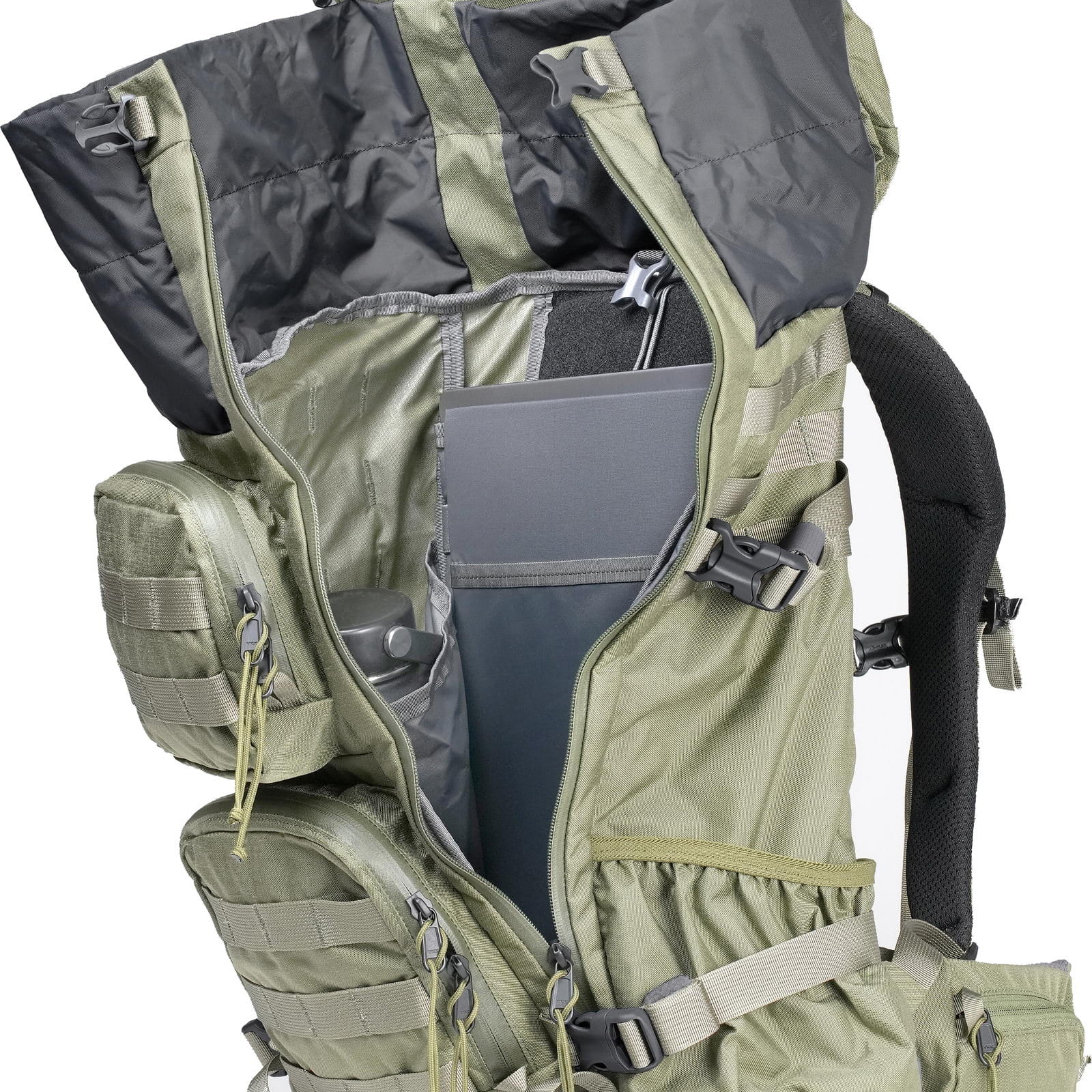 | Merkmale: | abnehmbarer Hüftgurt | Befestigung für Trinksystem | durchgehender und umlaufender Reißverschluss ins Hauptfach | Einschubfach im Hauptfach | gepolsterter Rücken | gepolstertes Einschubfach für Laptop im Hauptfach | höhenverstellbarer Brustgurt | Kompressionsriemen unten | Laptopfach mit separatem Zugang von außen | Lastkontrollriemen | Molle-System auf der Front und den Seiten | Reißverschlusstasche oben | seitliche Kompressionsriemen | Tragegriff | verstellbare Rückenlänge | zwei längliche Einschubfächer innen | zwei Reißverschlusstaschen vorne | zwei seitliche Einschubfächer |