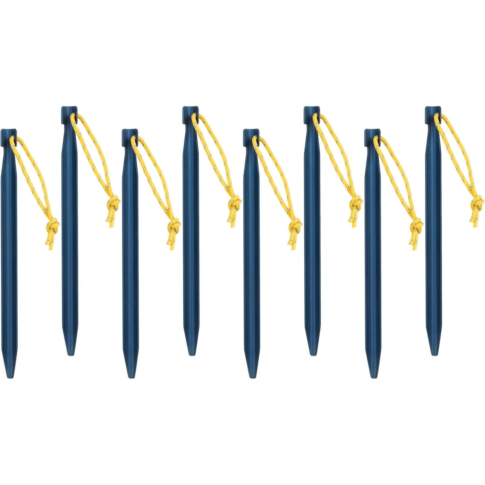 Die V-Stakes von NOMAD sind stabile Zeltheringe, die sich ideal für mittelharte bis harte Böden eignen. Das Set aus 8 Aluminium V-Zeltheringen überzeugt mit einer durchdachten Konstruktion und hochwertigen Materialien. Die V-Form mit verstärktem Mittelteil sorgt für eine sichere Verankerung, während das robuste Aluminium eine hohe Widerstandsfähigkeit gegen Biegung bietet. Mit einem Gewicht von nur 12 g pro Stück sind die Heringe leicht und dennoch äußerst stabil. Zusätzliche Kerben an den Seiten sorgen für optimalen Halt der Abspannleine und das reflektierende Zugband ermöglicht ein einfaches Entfernen aus dem Boden, selbst bei schlechten Lichtverhältnissen. Praktisch, zuverlässig und bestens geeignet für jedes Outdoor-Abenteuer.