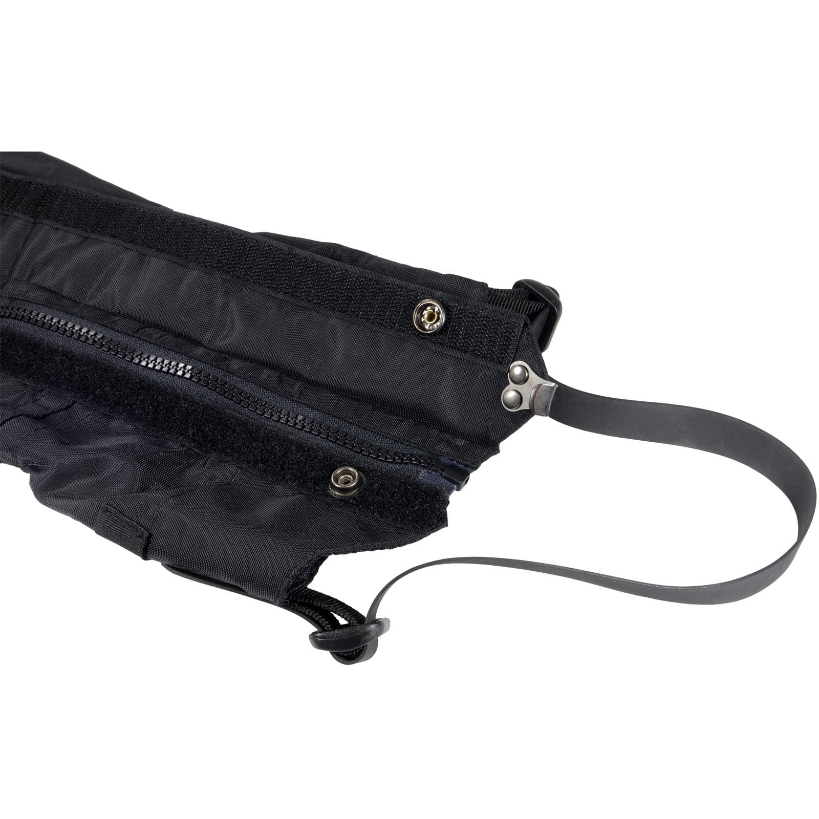 | Merkmale: | wasser- und winddicht | Klettverschluss mit Druckknöpfen | Kordelzug oben | Stiefelhaken unten | breiter, verstellbarer und stabiler Riemen im Sohlenbereich | Frontreißverschluss |