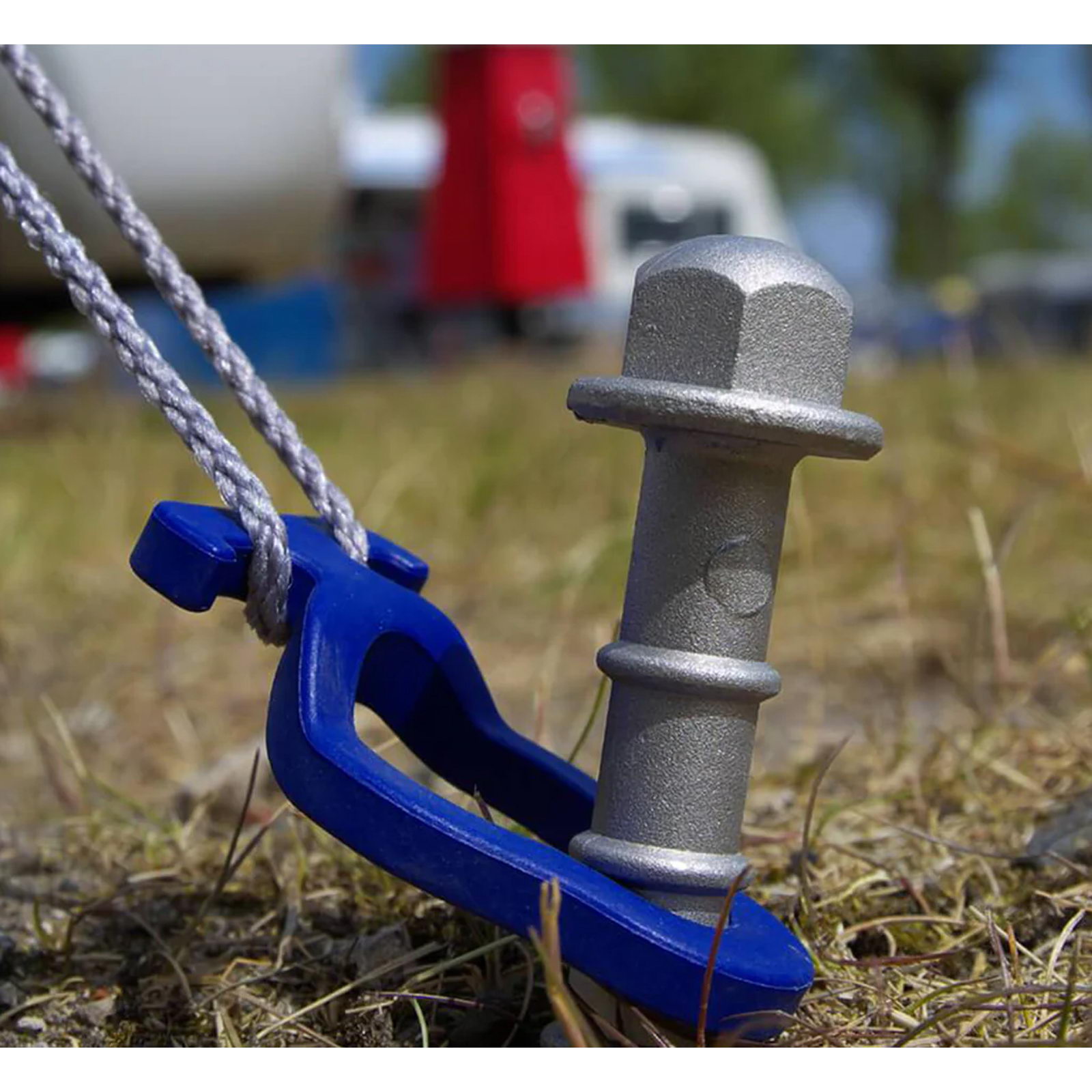 Die Schlag-Schraubheringe Hard Core 15 cm von Peggy Peg werden mit dem Hammer eingeschlagen. Links herumgedreht, ob maschinell oder per Handschlüssel, kommen die Heringe schnell wieder heraus. Konzipiert wurde der Hering ausschließlich für harte Böden und hält auch nur dort richtig fest. Der runde Kopf ermöglicht es, während des Einschlagvorgangs die Richtung der Spitze zu ändern. Der Hardcore Peggy ist leichter als ein herkömmlicher Metallhering, gibt aber x-mal besseren Halt. Und durch den höhenverstellbaren Haken braucht man nicht immer bis zum Ende eintreiben, sitzt der Hering fest im Boden, einfach den Haken einsetzen und fertig.