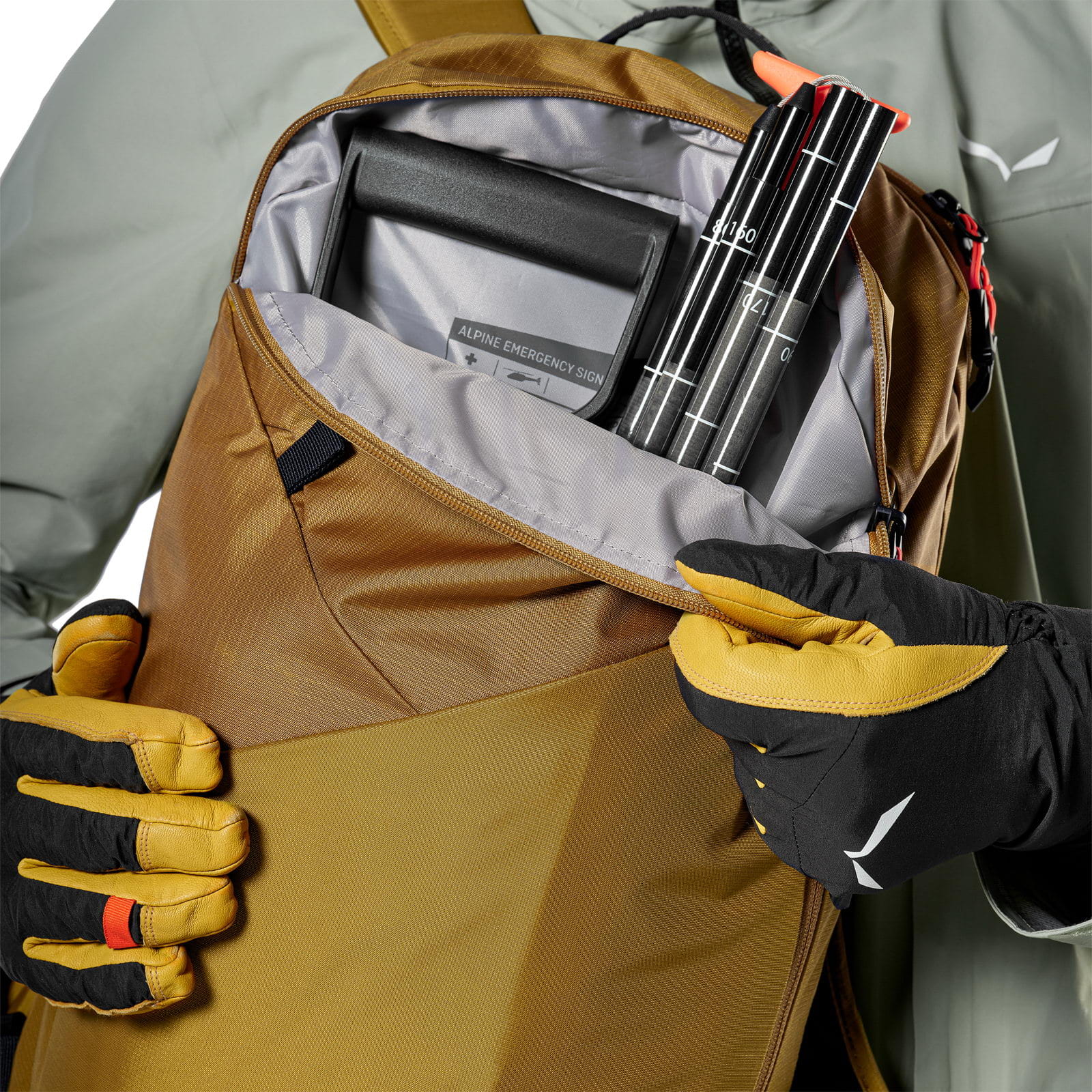 Der Sella Free 22L besteht aus einem strapazierfähigem, abriebfestem und zu 100 Prozent recyceltem Material. Die Ausrüstung ist über den vollständig zu öffnenden Hauptfachzugang am Rücken stets griffbereit, während die Lawinenausrüstung in einem separaten Fach sicher verstaut und schnell zugänglich ist. Weitere Features wie die diagonale Skifixierung und die Befestigungsmöglichkeit für Eispickel oder Stöcke machen den Rucksack zum idealen Begleiter beim Skitourengehen und beim Freeriden.