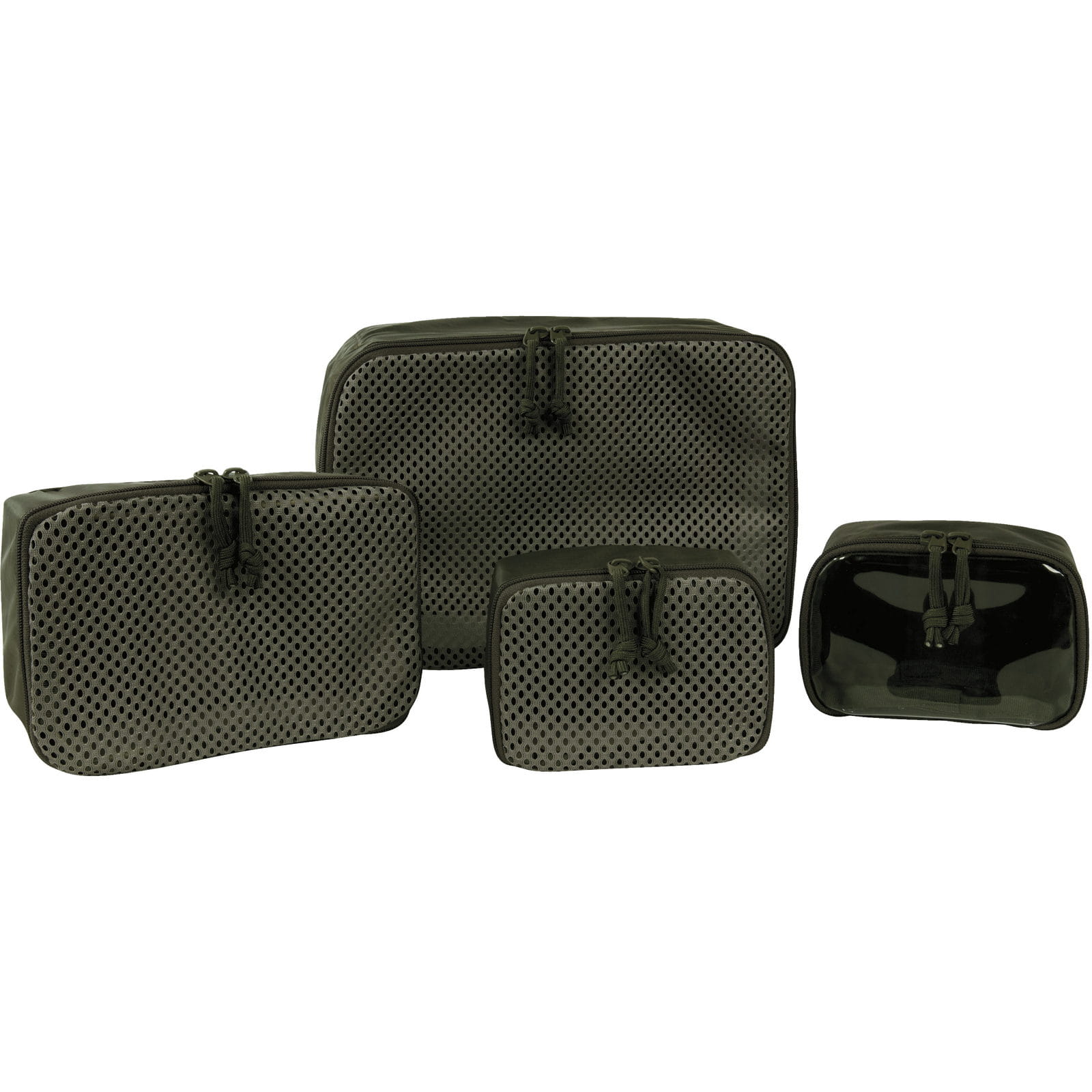 Das Modular Pouch Set VL von Tasmanian Tiger ist ein Netztaschen-Set, bestehend aus vier Taschen in verschiedenen Größen. Eine Tasche in Größe L, die auch komprimierbar ist, eine Tasche in Größe M und zwei Taschen in Größe S. Eine Tasche der Größe S hat einen transparenten Vinyldeckel, alle anderen Taschendeckel sind aus Netzmaterial. Die flexibel einsetzbaren Aufbewahrungstaschen sind alle mit Klettstreifen auf der Rückseite ausgestattet. Die Rückseite ist zudem abgedeckt für eine universelle Nutzung. Durch die Hakenklett-Rückseite sind die Taschen modular verwendbar und können in Rucksäcken mit Flauschklettflächen einfach befestigt werden.