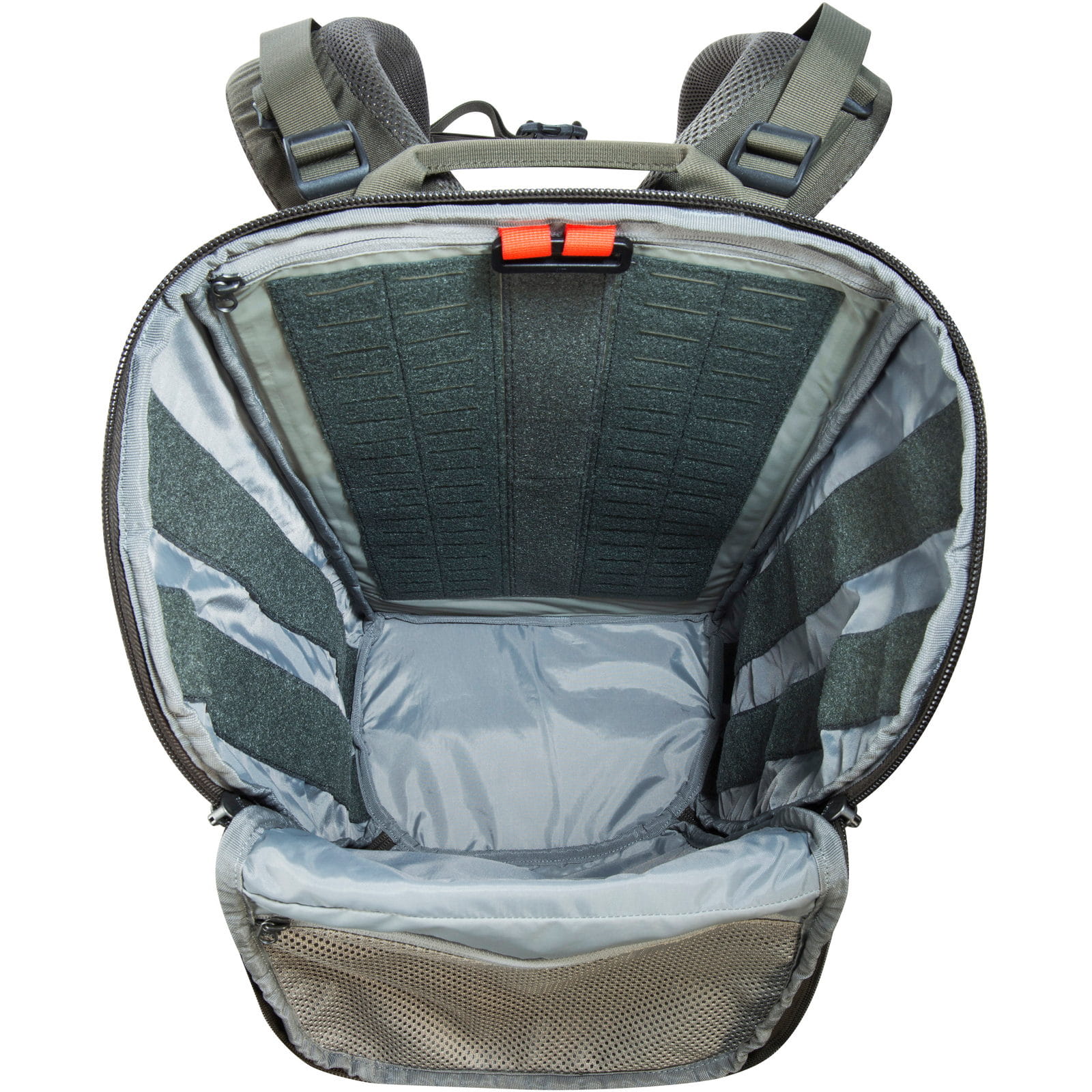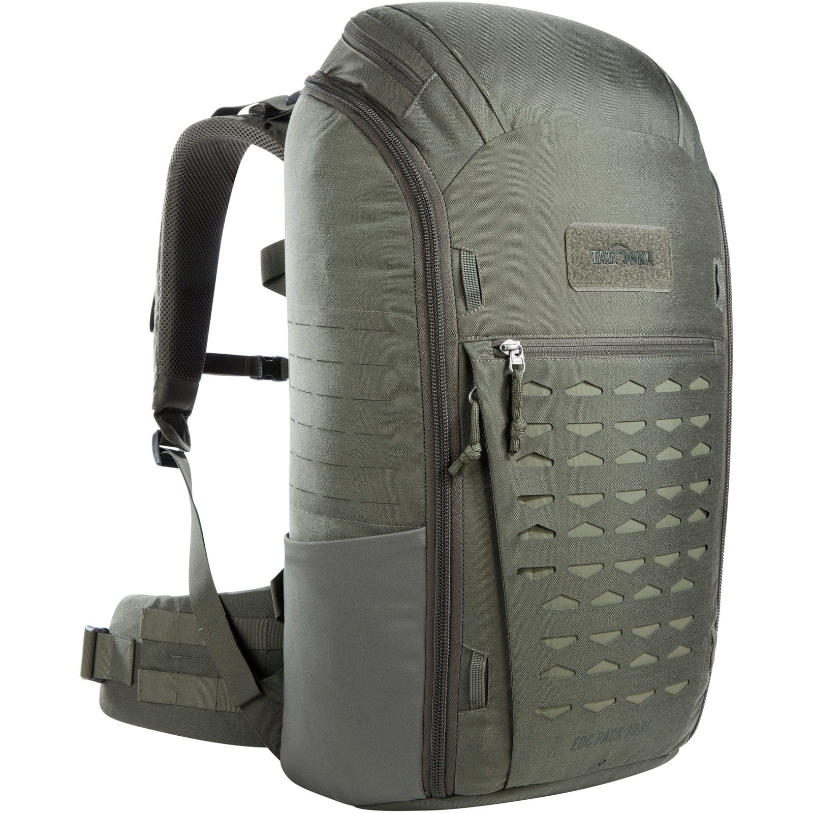 | Merkmale: | abnehmbarer Hüftgurt | abnehmbarer Hüftgurt auch separat nutzbar | Brustgurt abnehmbar | Deckelfach mit Reißverschluss außen | diverse Materialschlaufen | elastische Reißverschlusstasche auf einem Hüftflügel | Frontfach mit seitlichem Reißverschluss | gepolsterter Hüftgurt | höhenverstellbarer Brustgurt | Lastkontrollriemen | Logo in Klettfläche auf der Front | Materialschlaufen an der Front | modulares Befestigungssystem auf der Front | MOLLE-Klett im Innenbereich für modulare Erweiterungen | MOLLE-System an den Seiten | MOLLE-System auf einem Hüftflügel | MOLLE-System in Laser Cut-Ausführung | Netz-Reißverschlusstasche, elastische Materialschlaufen und zwei Einschubfächer im Deckelfach außen | Netztasche mit Reißverschluss unter dem Deckel | Reißverschluss-Frontfach | Tragegriff hinten oben | umgelenkter Hüftgurt-Zug | Vent Comfort Vario-Tragesystem | Vorbereitung für die Befestigung des Notebook Sleeve (separat erhältlich, Art.-Nr. 2016.040) | weit zu öffnendes Hauptfach | zwei Daisy Chains auf dem Deckel | zwei elastische Einschubfächer seitlich |
