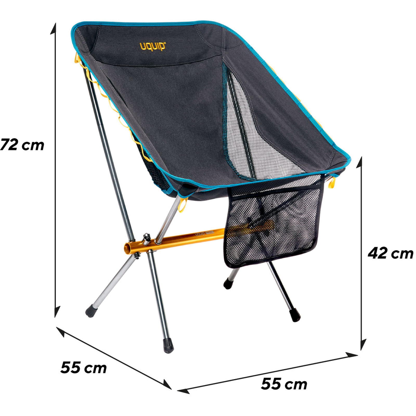 Der Infinity von UQUIP ist ein leichter und komfortabler Faltstuhl mit besonders kleinem Packmaß. Besonders praktisch ist die integrierte Netztasche, die genügend Platz für ein Buch, Smartphone oder andere kleine Gegenstände bietet. So hat man wichtige Dinge stets griffbereit, ohne sie auf dem Boden ablegen zu müssen. Zusätzlich sorgen die seitlichen Daisy Chain-Schlaufen dafür, dass allerhand Nützliches befestigt werden kann, sei es ein Karabiner mit Schlüssel, eine kleine Lampe oder anderes Zubehör. Das Gestell besteht aus 7075 Aluminium und der Stoff aus robustem Polyester. Dank seines hochwertigen Aluminiumgestänges hält er einer Belastung von bis zu 120 kg stand. Der geräumige Packsack ist nicht nur zum Verstauen des Stuhls gedacht, sondern lässt sich als praktische Tasche unter der Sitzfläche anbringen. So entsteht zusätzlicher Stauraum. Der bequeme Outdoorstuhl ist einfach im Auf- und Abbau und ideal für z.B. Motorradreisen, Radreisen oder zum Backpacking.