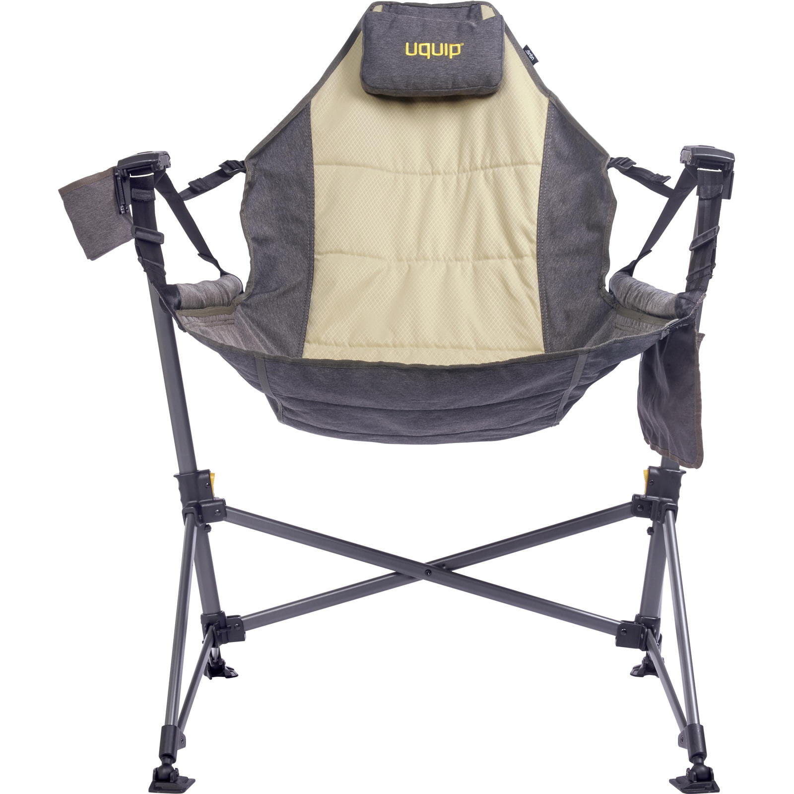 Der Rocky 2.0 von UQUIP bringt neuen Komfort in den Campingurlaub. Im Gegensatz zu Schaukelstühlen ist dieser Stuhl für den Einsatz auf jedem Untergrund, einschließlich felsigem, sandigem oder unebenem Boden konzipiert. Der stabile Stahlrahmen und die strapazierfähige Sitzfläche sorgen für eine extreme Belastbarkeit von bis zu 120 kg. Der Campingstuhl mit Schaukelfunktion ist darauf ausgelegt, beim Schwingen flexibel zu reagieren, sodass man dynamisch in der Luft schweben kann, während die Hängemattenstruktur für optimalen Komfort sorgt. Ein bequemes Kissen, eine seitliche Tasche und ein Getränkehalter sorgen für zusätzlichen Komfort und Bequemlichkeit, sodass die Getränke und Snacks immer griffbereit sind. Der Stuhl ist der perfekte Begleiter für Campingausflüge, Strandtage, Entspannung im Garten oder an der Seitenlinie beim Fußballspiel der Kinder. Der Rocky 2.0 wird mit einer praktischen Tragetasche geliefert, die den Transport und die Aufbewahrung erleichtert.