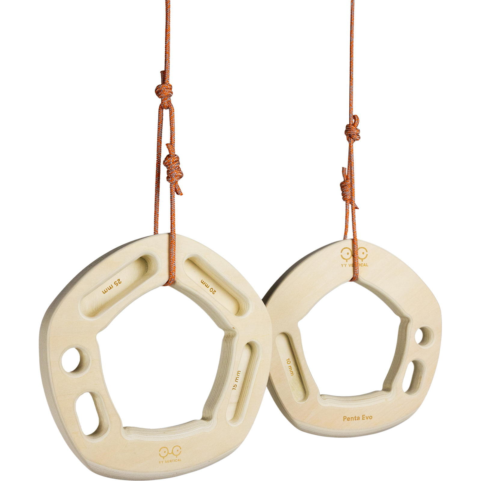 Die paarweise verkauften Penta Evo von YY Vertical sind die perfekte Kombination aus einem Ring und dem Penta. Die Penta Evo vereinen die Vielseitigkeit und Mobilität, die den Penta so erfolgreich gemacht haben, mit einem deutlich höheren Komfort. Abgerundete Kanten und eine hochwertige Verarbeitung sorgen für ein angenehmes Griffgefühl. Durch die Ergänzung eines ergonomischen Griffbereichs können die Trainingsgriffe zudem auch als Ringe verwendet werden. Besonders für größere Hände bieten die Penta Evo einen spürbaren Vorteil: Breite Handflächen und kräftige Finger finden ausreichend Platz und profitieren von einer sehr angenehmen Haptik, insbesondere bei der Verwendung als Ringe. Ob für Deadlifts zu Hause, im Outdoor-Training an einem Baum aufgehängt oder in der Halle bzw. am Fels in Kombination mit einem Widerstandsband zum Aufwärmen – die Penta Evo passen sich flexibel jeder Trainingssituation an. Gefertigt aus Pappelsperrholz vereinen sie Leichtigkeit mit hoher Robustheit. Ausgestattet mit 7 verschiedenen Griffmöglichkeiten und einer 360°-Rotationsfähigkeit ermöglichen die Penta Evo eine einfache Variation der Griffarten und Haltepositionen während des Trainings. Dadurch lassen sich gezielt die Muskeln von Fingern, Armen, Schultern und Rücken stärken, während gleichzeitig Sehnen- und Bandstrukturen schonend mittrainiert werden, was das Verletzungsrisiko reduziert. Die Penta Evo sind die ideale Wahl für alle Kletternden, die ihre Kraft und Technik unter optimalen Bedingungen verbessern möchten.
